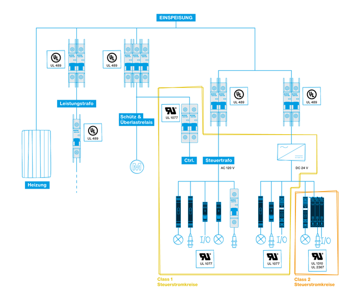 The application example according to UL 508 shown here illustrates the wide range of applications.