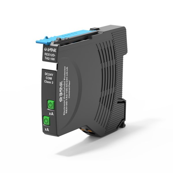 The double channel REX12D electronic circuit protector protects the system in the event of overcurrent and short circuit. It reliably disconnects the faulty circuit and prevents voltage dips in the DC24V power distribution.